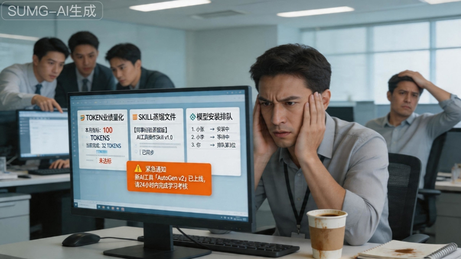 排队装模型、全员学工具、用token(词元)量化业绩,把同事经验蒸馏成skill(技能)文件……消息真假难辨,焦虑的神经却已紧绷。有人追逐每一个新工具,生怕慢一拍就被时代淘汰;有人感叹,拥抱AI后,反而比之前更累了;也有人开始思考:那个不需要向AI证明自己就能存在的、鲜活的“自我”,到哪里去了?